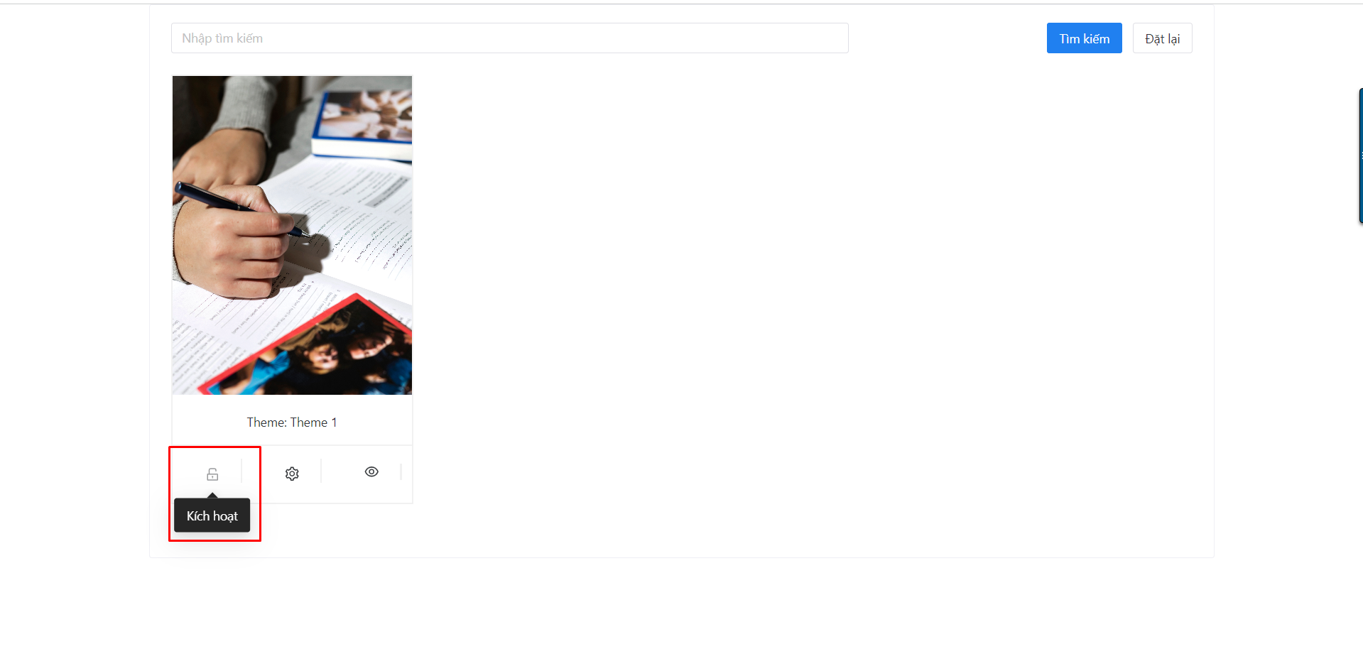 Click biểu tượng kích hoạt để sử dụng theme cho website.