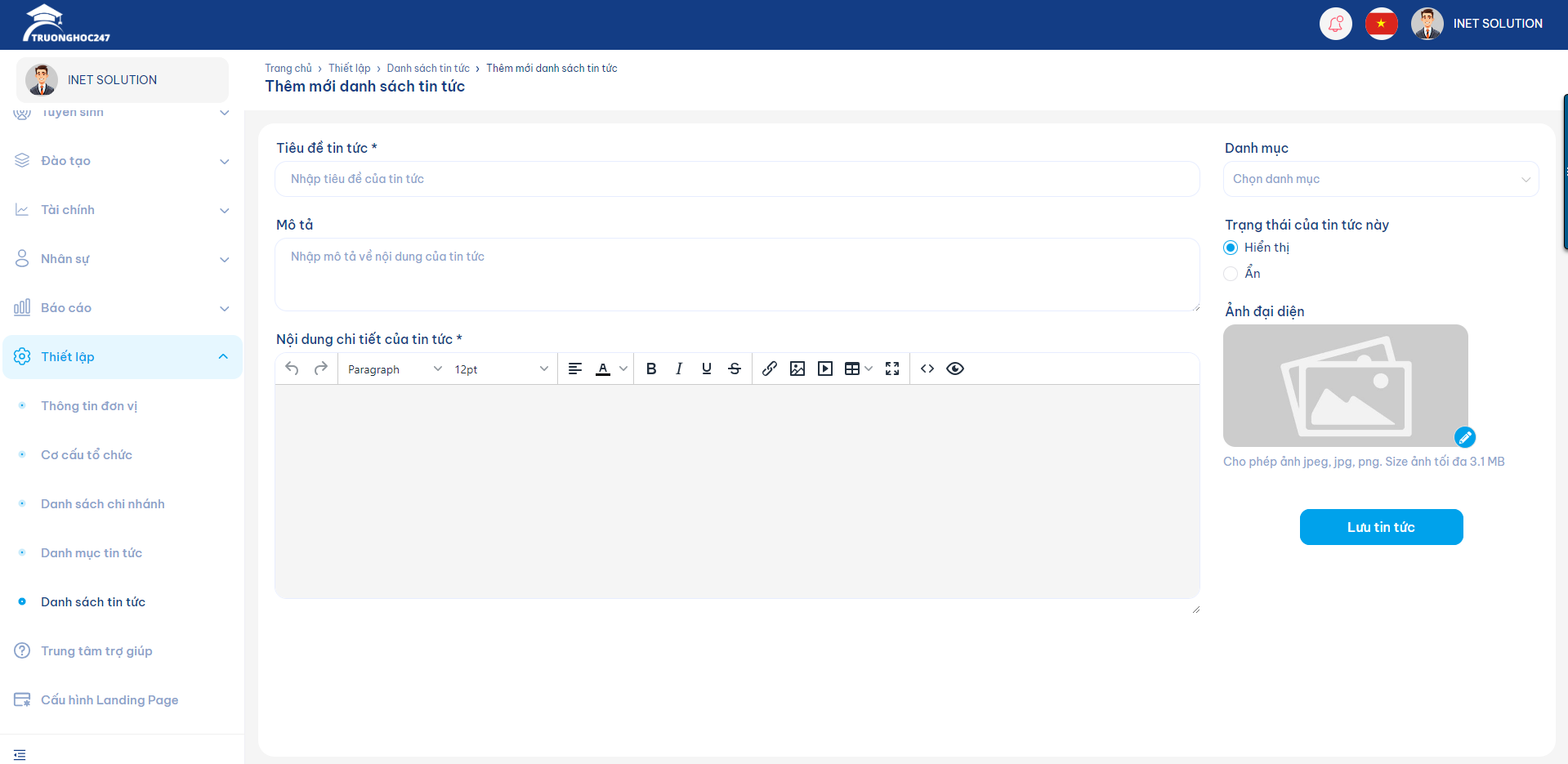 Sau đó click "Lưu tin tức" để lưu thông tin.